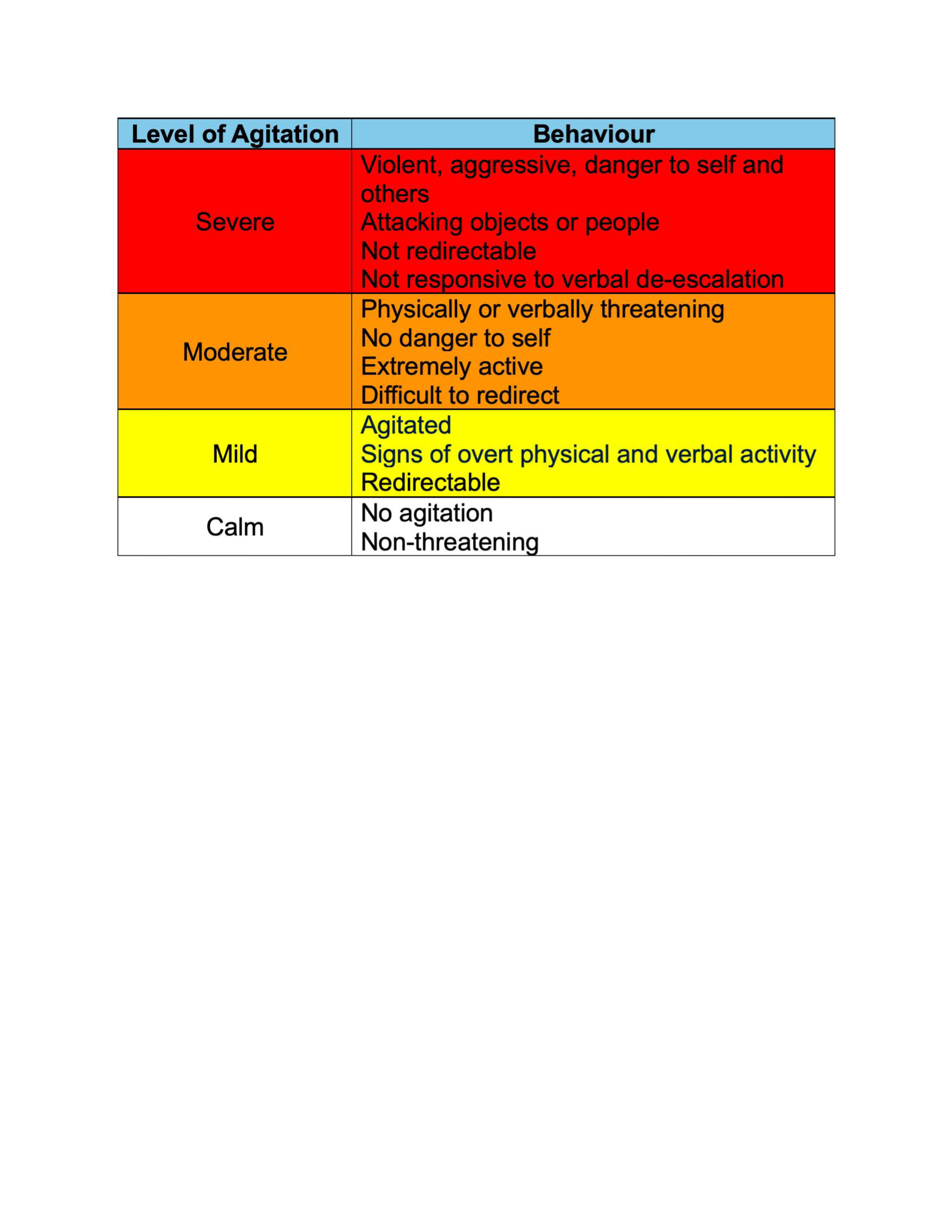 - Treat manifestations of behavioural emergency as appropriate: